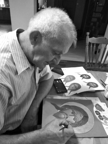 Był jeszcze naszym „nadwornym portrecistą” i co jakiś czas obdarowywał kogoś z nas malowanym w tajemnicy portretem.