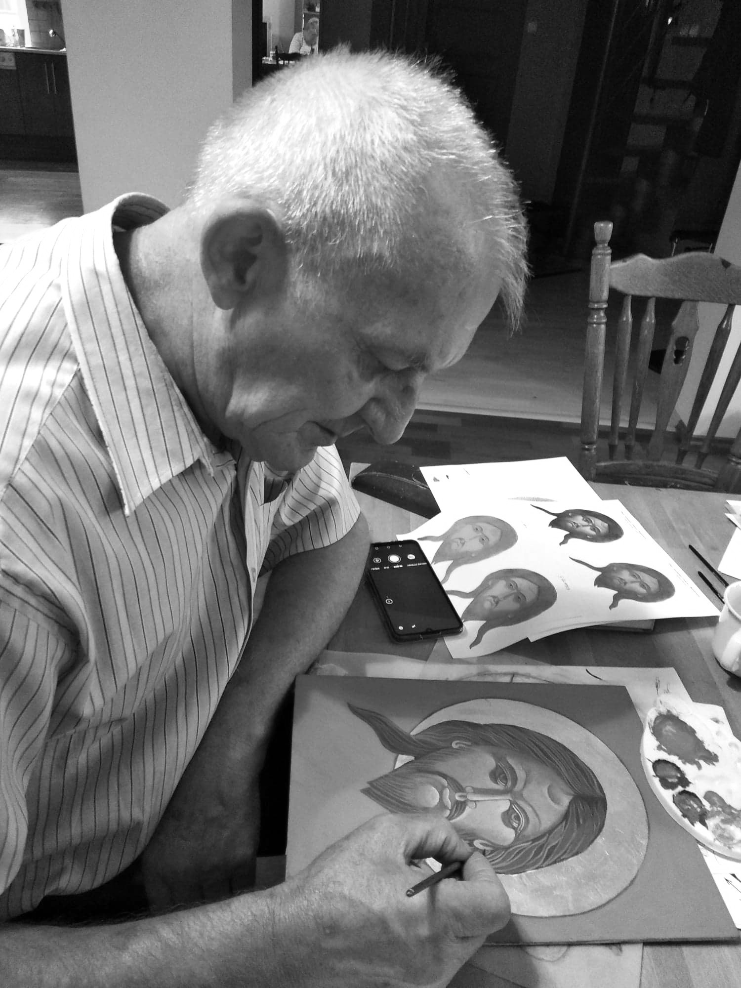 W poszukiwaniu nowych wyzwań zapisał się (2021) na nowe zajęcia na naszym uniwersytecie – warsztaty pisania ikon, poprowadzone przez artystę plastyka Jolantę Kolary. (2020-2021). A wkrótce z ucznia stał się nauczycielem i na prośbę słuchaczy poprowadził dla nich warsztaty pisania ikon (od 2023). Robił to znakomicie i do końca swego życia. Na ostatnie zajęcia przyszedł 28 IV 2025 r. Przyszedł się pożegnać…