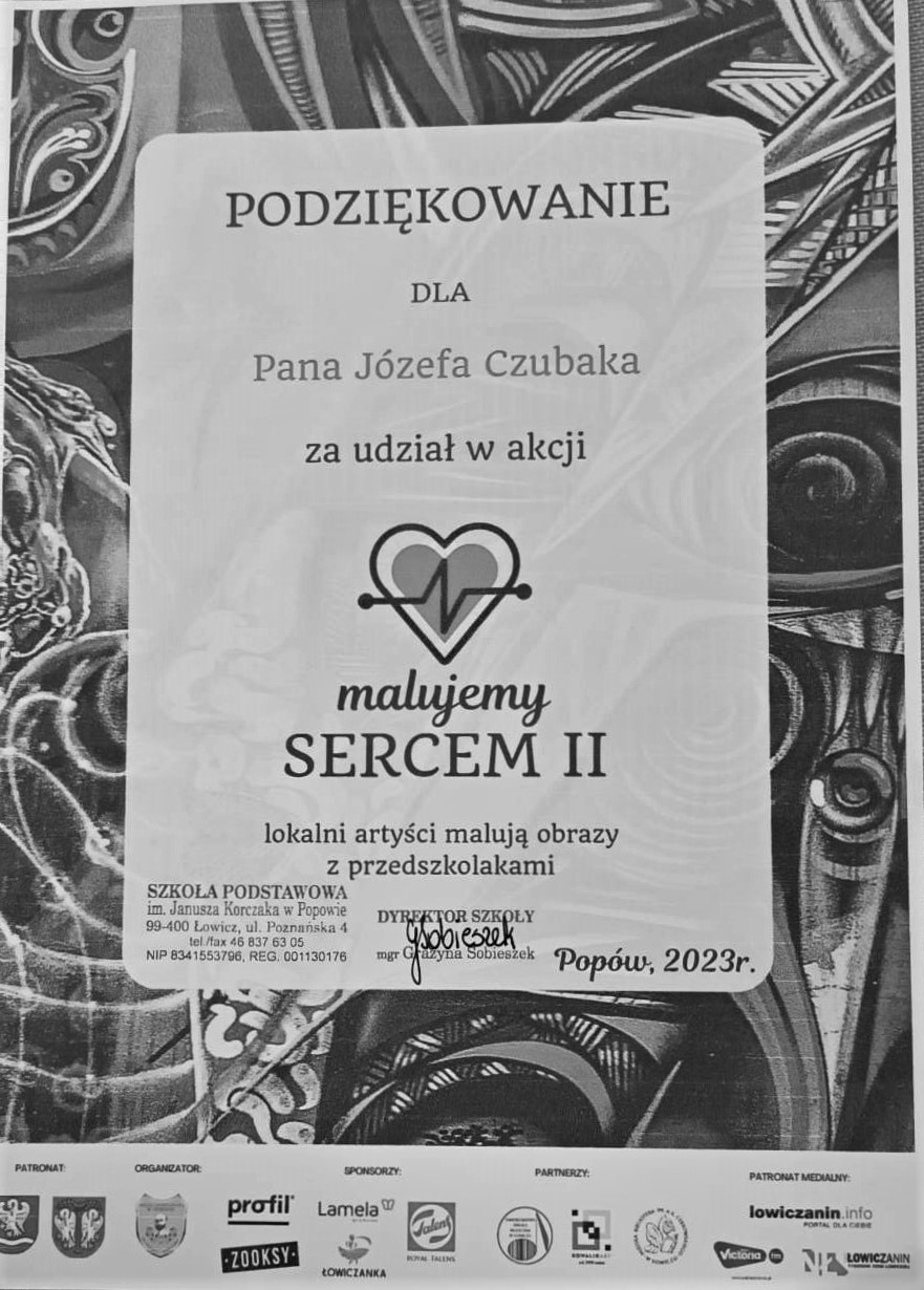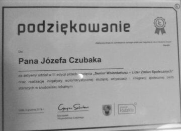 Ale początek tego wolontariatu był wcześniejszy. W 2019 r. uczestniczył z inną słuchaczką ŁUTW w szkoleniu „Senior Wolontariusz – Lider Zmian Społecznych”. Razem przeprowadzili później projekt pn. „Radość wspólnego tworzenia” i we współpracy z wychowankami Specjalnego Ośrodka Szkolno-Wychowawczego w Łowiczu, przy wsparciu innych seniorów z ŁUTW, namalowali wspólnie obraz „Nasza Ziemia”. Za te działania otrzymał podziękowania od Marszałka Województwa Łódzkiego.