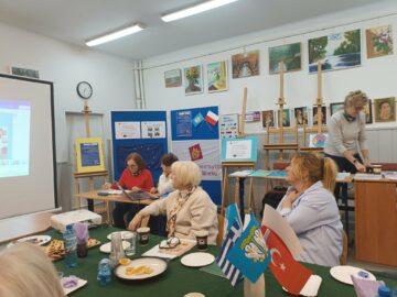 Uczestniczki 2 dotychczasowych międzynarodowych kursów dla kadry zarządzającej i dydaktycznej z akredytowanego projektu nr 2025-1-PL01-KA121-ADU-000313029 ŁUTW podzieliły się swoimi wrażeniami z wyjazdów. Przekazały przybyłym na spotkanie słuchaczom najważniejsze informacje nt. programów swoich kursów i formuły zajęć, zaproponowanych programów kulturowych i wrażeń z wycieczek oraz o nawiązanych kontaktach z trójkowymi reprezentacjami Uniwersytetów Trzeciego Wieku w Polsce, z którymi realizowali ten sam program. Nie zabrakło informacji o organizacjach partnerskich przyjmujących polskich seniorów oraz codziennej prozie życia: zakwaterowanie, wyżywienie, komunikowanie się w języku angielskim.
