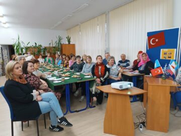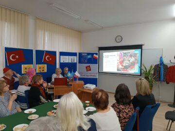 Ważnym elementem pobytu w Turcji było spotkanie z uczestnikami zajęć w tzw. Centrum Edukacji Publicznej, gdzie seniorzy i ludzie młodzi realizują swoje pasje – głównie artystyczne. Obejrzeli ich przepiękne wytwory, poznali kulturę, tradycję i rękodzieło. Mieli też szansę do zaprezentowania siebie i swoich zainteresowań, ale w języku angielskim, co było jednak dużym stresem. Wzięli też udział w warsztatach, podczas których wykonywali dla siebie bransoletki metodą makramy, a jedną dodatkowo zrobioną przywieźli dla prezes K. Kucharskiej.