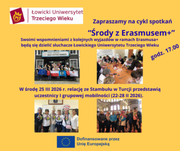 Czemu służyła kolejna „Środa z Erasmusem+”? Przekazaniu wprost innym słuchaczom Łowickiego Uniwersytetu Trzeciego Wieku informacji, że warto uczyć się języka angielskiego, że warto zaangażować się w życie stowarzyszenia, by móc korzystać z programu Erasmus+, bo daje on niezwykłe szanse na wzbogacenie wiedzy i umiejętności oraz poznawanie Europy. Warto też pamiętać, że zgodnie z „Przewodnikiem po programie Erasmus” międzynarodowe kursy są tylko dla kadry zarządzającej i wykładowczej, a wyjazdy na mobilności grupowe słuchaczy – dla tzw. zwykłych słuchaczy.