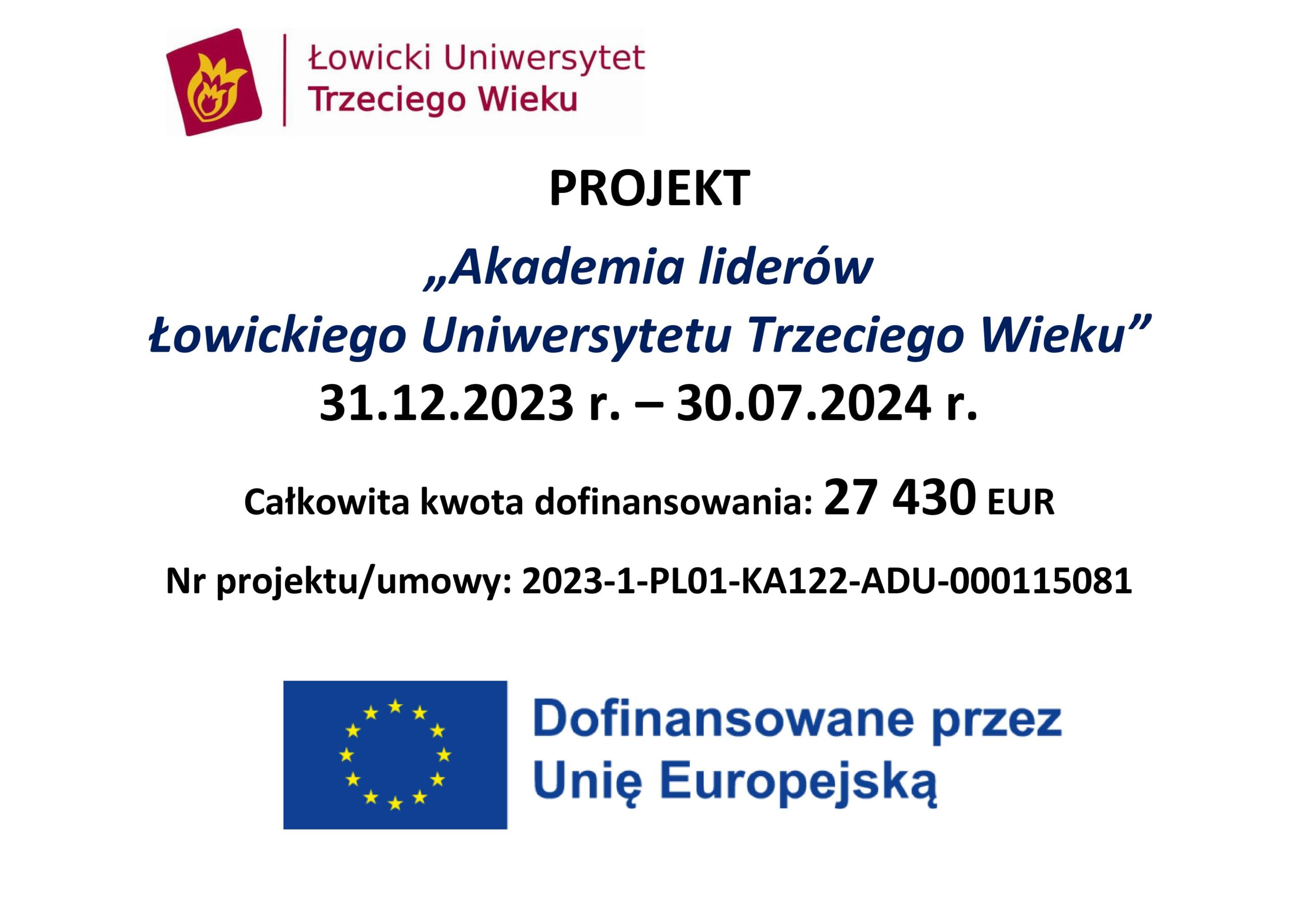 Na działanie to Łowicki Uniwersytet Trzeciego Wieku otrzymał z Narodowej Agencji Programu Erasmus+ i Europejskiego Korpusu Solidarności dofinansowanie w wysokości 27 430 euro.