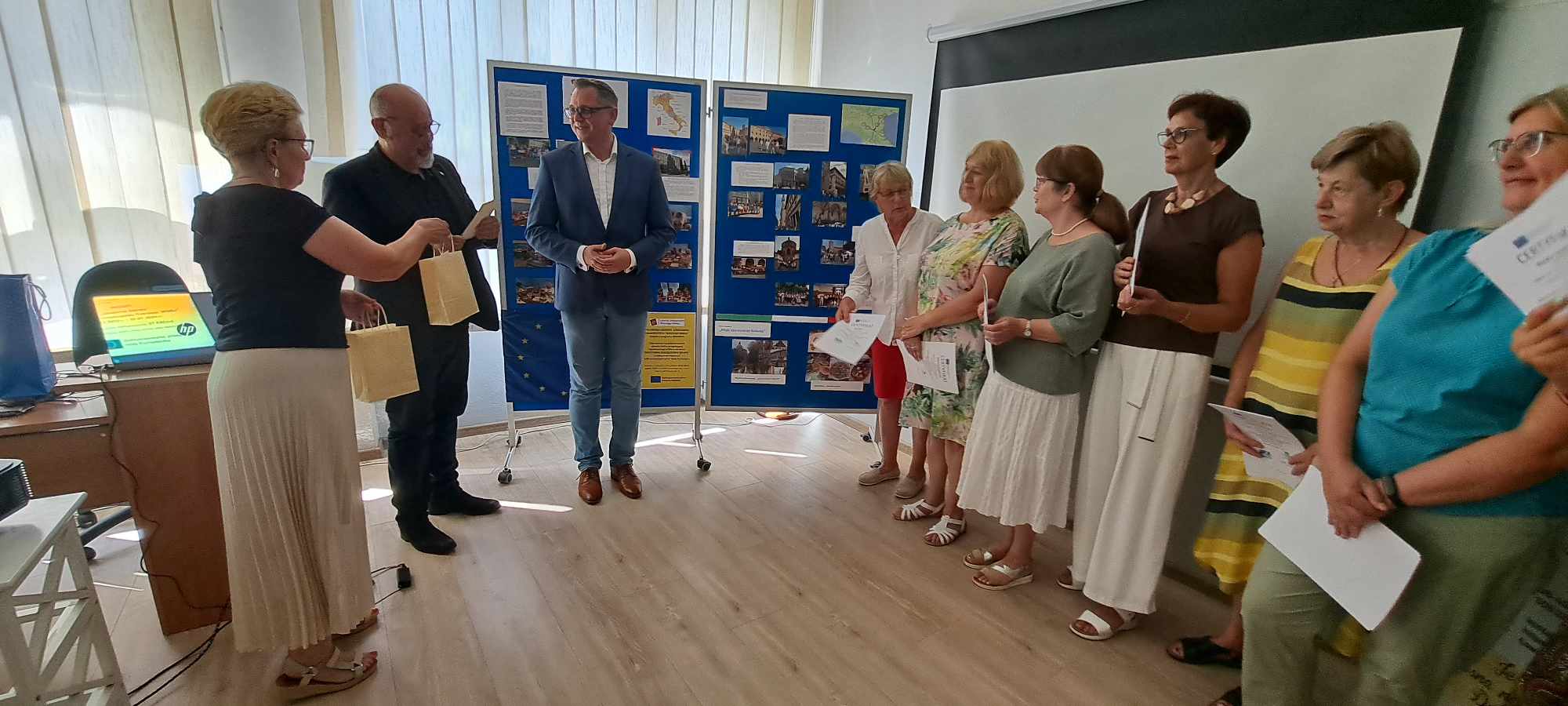 Była też okazja by podsumować wewnętrzny konkurs fotograficzny pn. „Moje zauroczenie Bolonią”, a nagrody przygotowane przez Prezesa ŁUTW odebrały z rąk burmistrza Jacka Kłosa dwie uczestniczki mobilności: Ewa Białas i Wiesława Bryszewska.