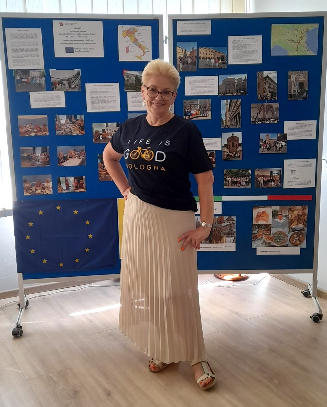 Przygotowane przez prezes ŁUTW Krystynę Kucharską, koordynatora projektu, sprawozdanie dotyczyło w szczególności szkoleniowego pobytu 10-osobowej grupy kadry zarządzającej i dydaktycznej ŁUTW w Bolonii w dniach 3-14 VI 2024 r. na kursie pn. „Efektywne zarządzanie grupą”, podczas którego rozwijali różne umiejętności, m.in.: zawodowe, językowe, organizacyjne, komunikacyjne, kulturowe oraz wymieniali doświadczenia z grupami z innych krajów Unii Europejskiej realizującymi mobilności z programu Erasmus+.