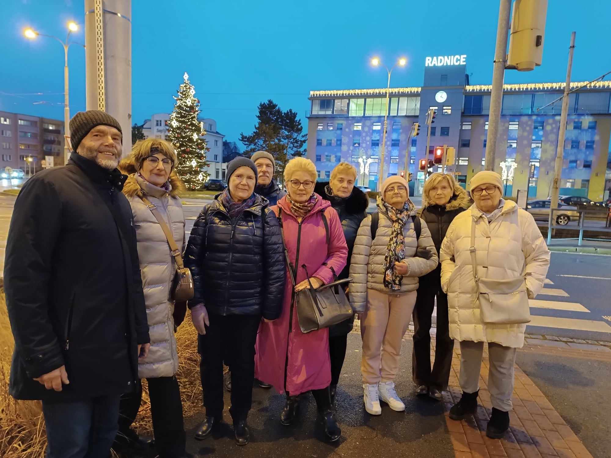 Czesi słyną z tradycji przedświątecznych jarmarków, które przygotowuje się niemal na każdym wolnym placu, ryneczku, a także z tego, że w takich miejscach organizuje się wspólne kolędowanie. Żeby ułatwić wszystkim śpiewanie, teksty kolęd wyświetla się na dużych telebimach. Towarzyszą temu kolorowe iluminacje i występy na powietrzu. I te wydarzenia były także celem codziennych wypraw słuchaczy ŁUTW po dzielnicy Ostrava Jih. Podczas tych spacerów ich uwagę przyciągały niezwykle efektowne iluminacje miejskich obiektów, tak jak np. na Nowym Ratuszu na głównym rynku Ostrawy.