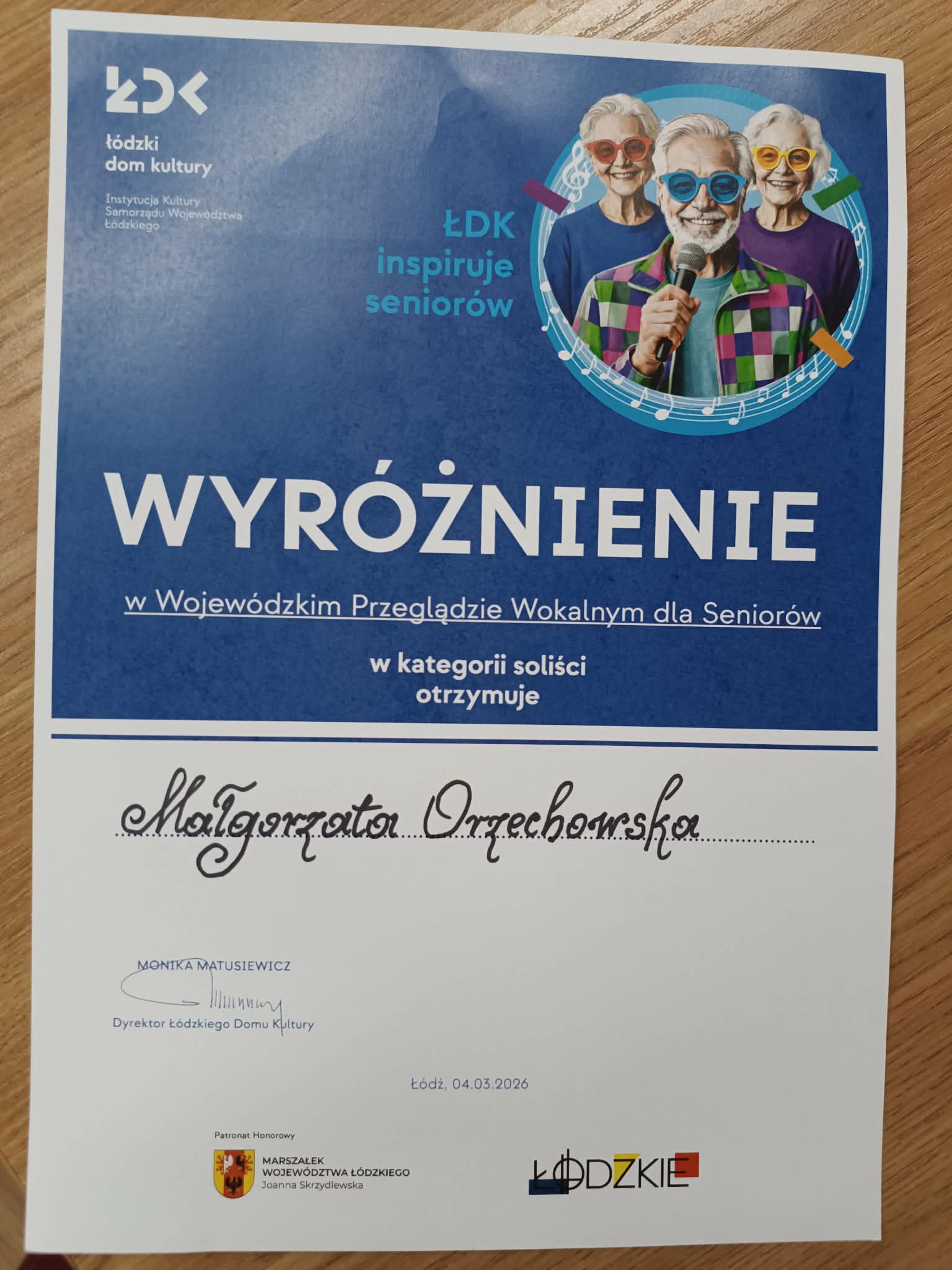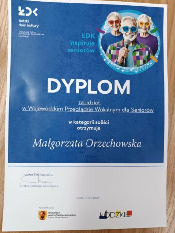 Wyróżnienie dla M. Orzechowskiej na Wojewódzkim Przeglądzie Wokalnym dla Seniorów