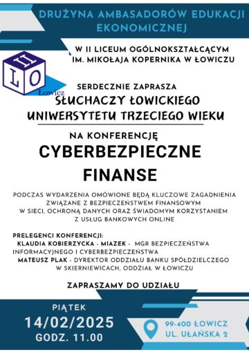 Konferencja CYBERBEZPIECZNE FINANSE w II LO w Łowiczu