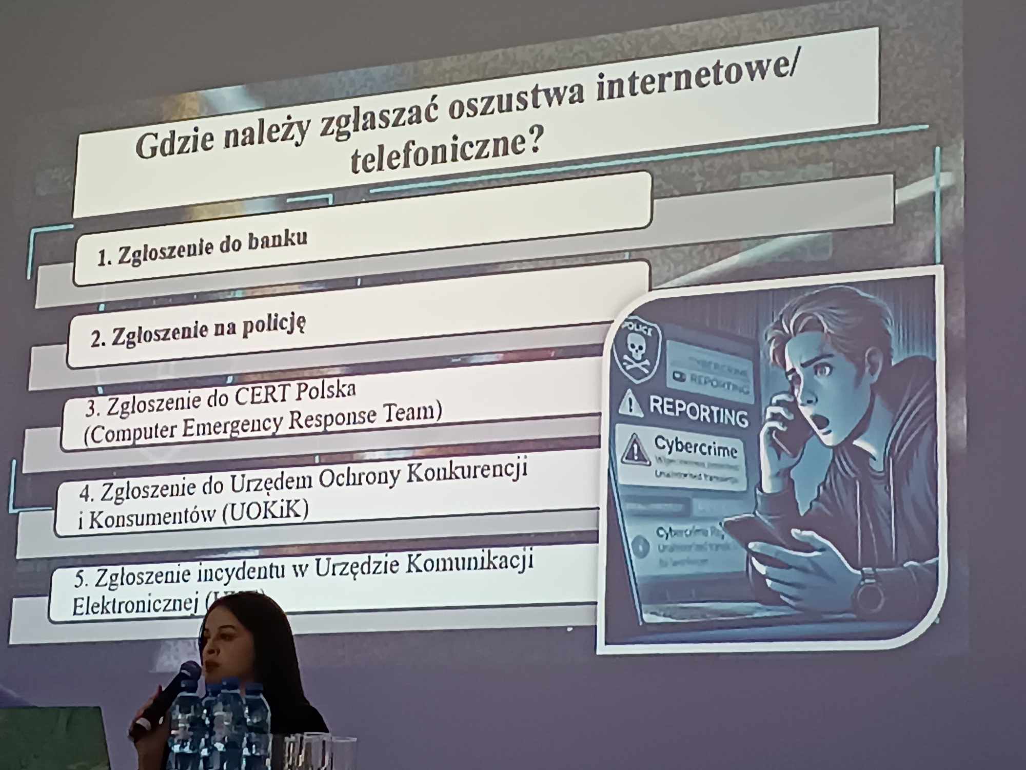 Prelegentami byli: Klaudia Kobierzycka - Miazek - mgr bezpieczeństwa informacyjnego i cyberbezpieczeństwa oraz Mateusz Plak - dyrektor Oddziału Banku Spółdzielczego w Skierniewicach, Oddział w Łowiczu.