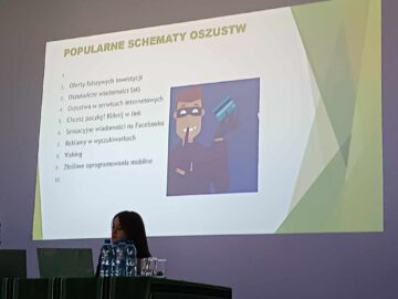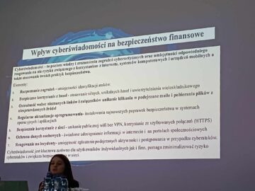 Podczas spotkania omówiono kluczowe zagadnienia związane z bezpieczeństwem finansowym w sieci, ochroną danych oraz świadomym korzystaniem z usług bankowych online.