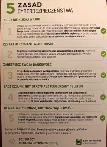 - Natychmiast skontaktuj się z bankiem, jeśli zauważysz nieprawidłowości na swoim koncie lub podejrzane transakcje.