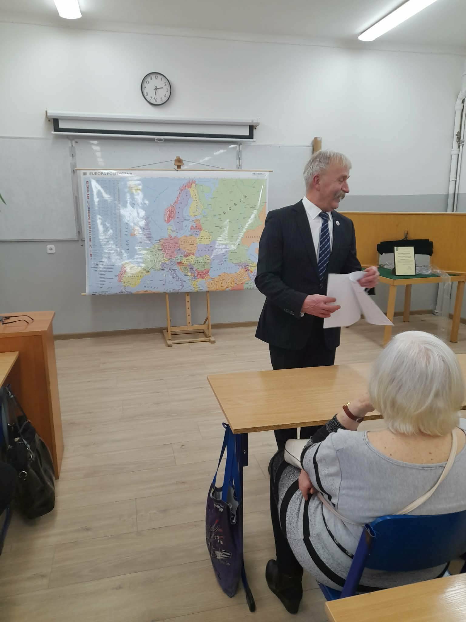 Takimi ciekawymi tematami prof. K. J. Kaliński zachęca studentów-seniorów z ŁUTW do udziału w spotkaniach z historią, a sala wykładowa na jego zajęciach jest zawsze wypełniona. Przekazywanie wiedzy historycznej wzmocnione zostaje powoli pomocami dydaktycznymi, tak jak ostatni nabytek – nowa mapa polityczna Europy zakupiona w 2025 r. w ramach realizacji zadania publicznego „Senior młody duchem” dofinansowanego z budżetu Gminy Miasto Łowicz.