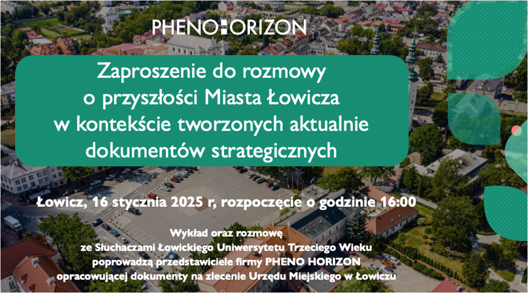 Spotkanie dla słuchaczy Łowickiego Uniwersytetu Trzeciego Wieku oraz CHĘTNYCH MIESZKAŃCÓW Łowicza przeprowadzą przedstawiciele zespołu firmy PHENO HORIZON, prowadzącej prace na rzecz Miasta Łowicza.