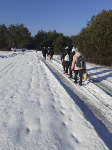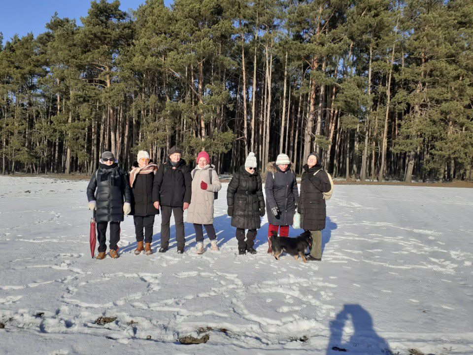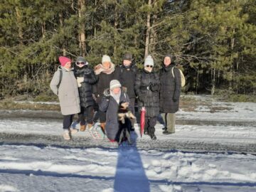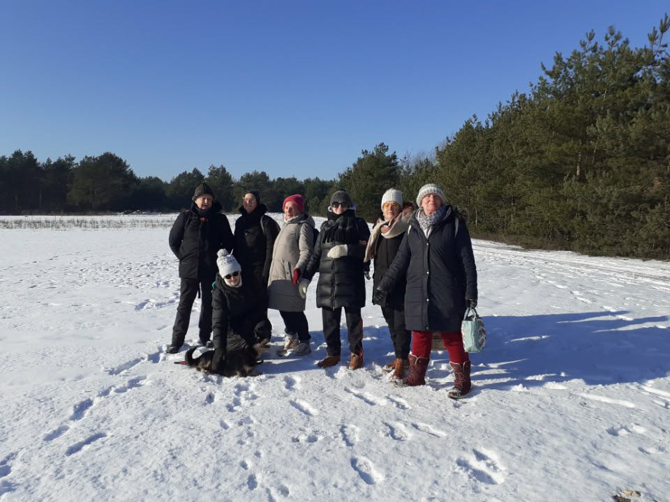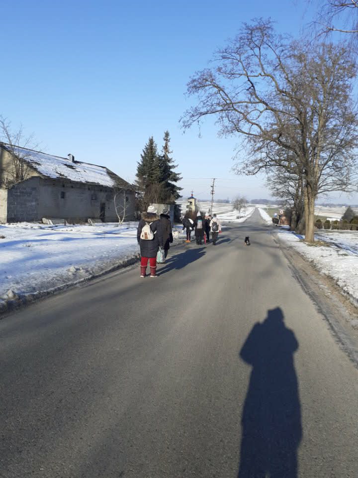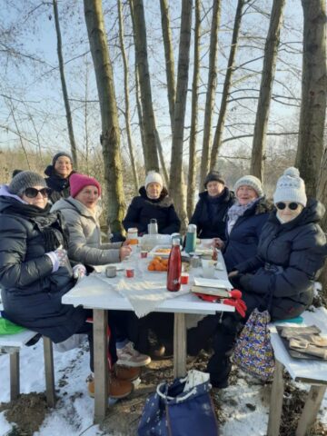 Ale w trosce o bezpieczeństwo uczestników zdecydowano jednak o małej przerwie w styczniowych spacerach z uwagi na złe warunki atmosferyczne. Wyruszyli dopiero 21 I 2026 r. w piękną, choć mroźną środę. Trzygodzinny spacer w zimowym słońcu po lasach w Dąbkowicach Górnych przyniósł im wiele radości i niemal sentymentalnego powrotu do dzieciństwa.