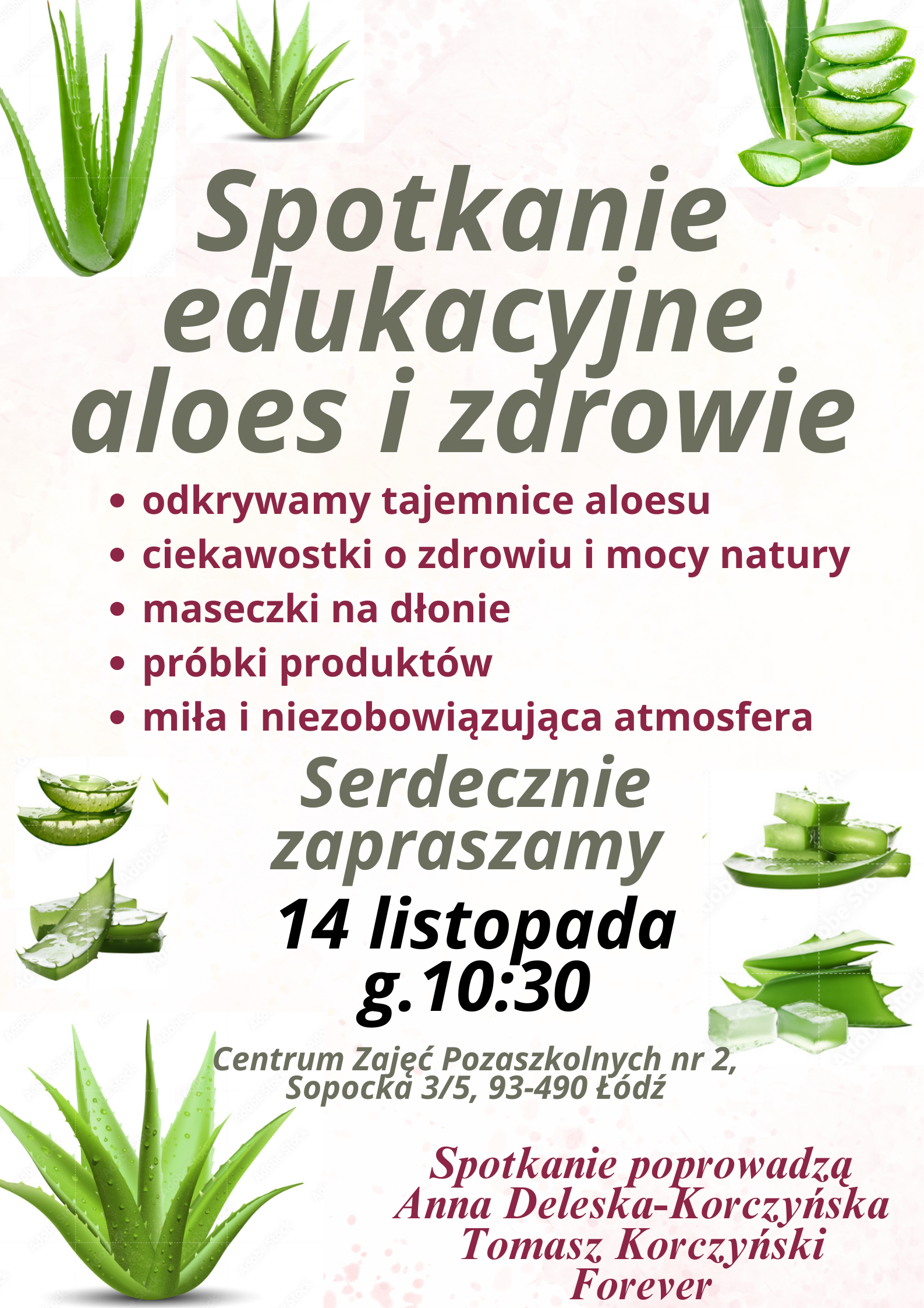 - 23 I 2025 (czwartek) godz. 16.00 – ALOES I ZDROWIE – spotkanie edukacyjne przedstawiające aloes, metody jego hodowli, zbierania, filetowania oraz produkcji preparatów codziennego użytku, ciekawostki o zdrowiu i mocy natury. Spotkanie autorskie (z prezentacją multimedialną) poprowadzą: Anna Deleska-Korczyńska i Tomasz Korczyński.