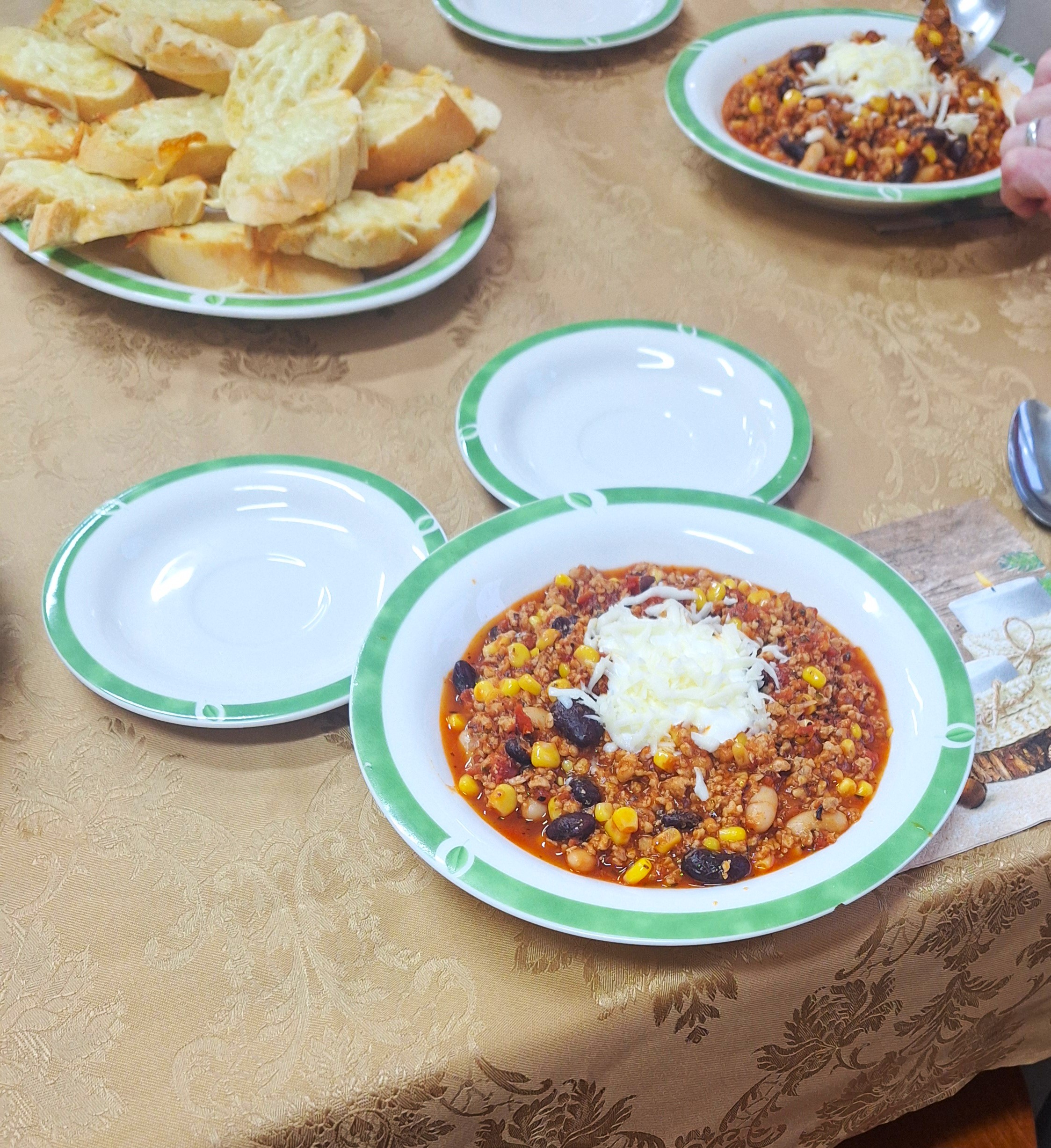 Na spotkanie w dn. 20 lutego koleżanki z zespołu Elżbiety Fafińskiej przygotowały zupę dyniową na bulionie warzywnym. Bardzo przydał się do tego blender zakupiony w ramach wsparcia działań tego koła z projektu „Senior młody duchem” dofinansowanego w 2025 r. z budżetu Gminy Miasto Łowicz. po zupie dyniowej bardzo smakował przygotowany przez niedawną solenizantkę Danutę Brudkę słodki poczęstunek: sernik, słodycze i owoce.