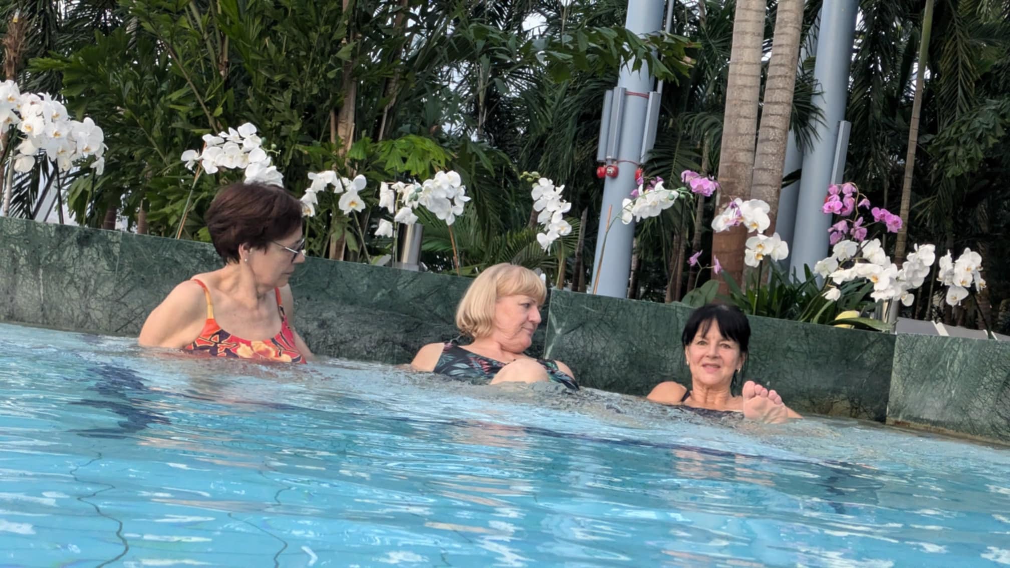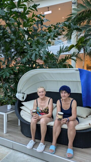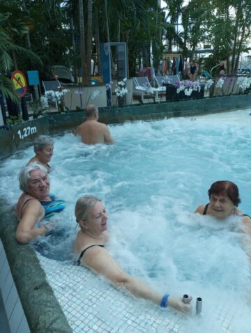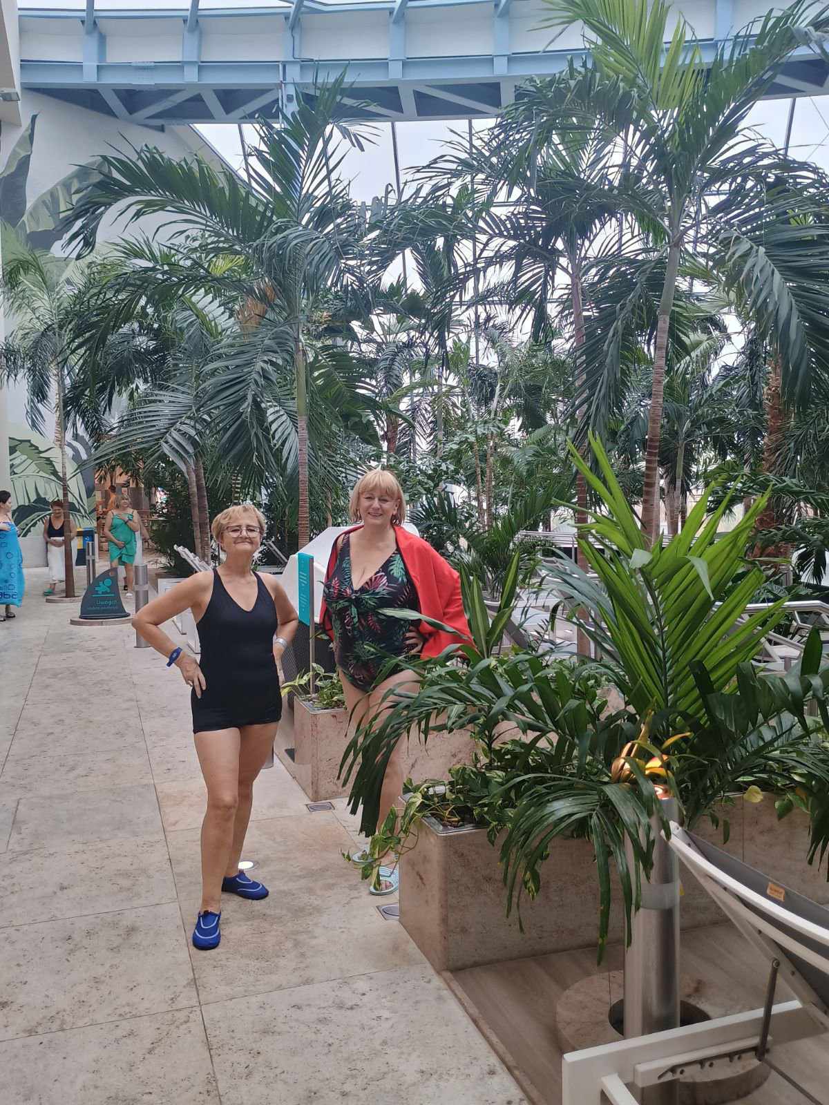 RELAX – to strefa „dorosłych”, czyli strefa ciszy przeznaczona do odpoczynku. I odpoczywali na leżakach w ogrodzie wśród 400 palm, zażywali kąpieli w basenie termalnym i basenach mineralnych. A czy odważyli się pójść do głośnej strefy JAMANGO Wodna Dżungla, gdzie również mnóstwo palm i leżaków, ale też ponad 30 tematycznych zjeżdżalni o różnym stopniu trudności? Tego nie udokumentowali na zdjęciach, więc pewności nie ma, ale wrócili zadowoleni i to jest najważniejsze.