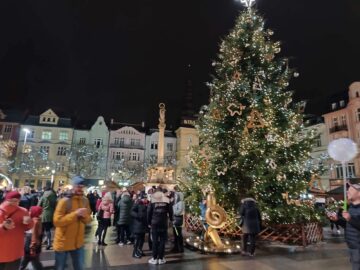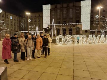 Czesi słyną z tradycji przedświątecznych jarmarków, które przygotowuje się niemal na każdym wolnym placu, ryneczku, a także z tego, że w takich miejscach organizuje się wspólne kolędowanie. Żeby ułatwić wszystkim śpiewanie, teksty kolęd wyświetla się na dużych telebimach. Towarzyszą temu kolorowe iluminacje i występy na powietrzu. I te wydarzenia były także celem codziennych wypraw słuchaczy ŁUTW po dzielnicy Ostrava Jih. Podczas tych spacerów ich uwagę przyciągały niezwykle efektowne iluminacje  miejskich obiektów, tak jak np. na Nowym Ratuszu na głównym rynku Ostrawy.