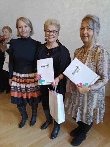 Zwieńczeniem spotkania było wręczenie certyfikatów dla wszystkich uczestników grupowej mobilności z akredytowanego projektu o numerze 2024-1-PL01-KA121-ADU- 000208768 dofinansowanego przez Unię Europejską. Dokonały tego panie Sarka Zubkowa oraz Wioletta Marciniak – przedstawicielka organizacji przyjmującej, która opiekowała się seniorami z Łowicza.