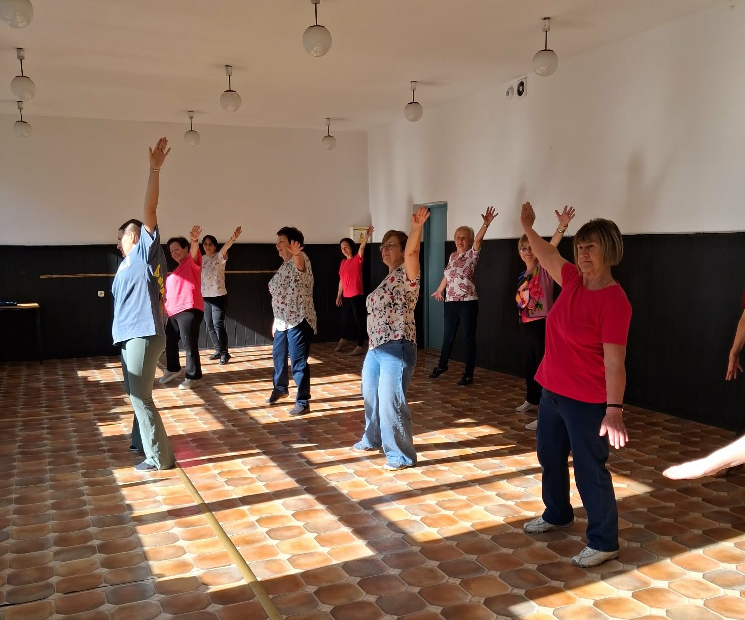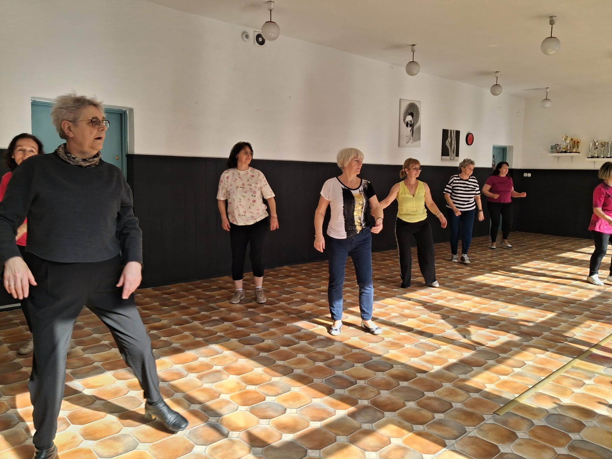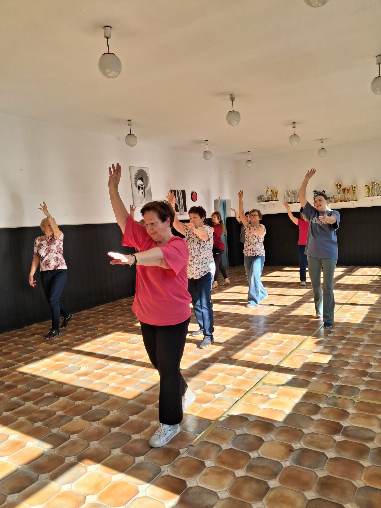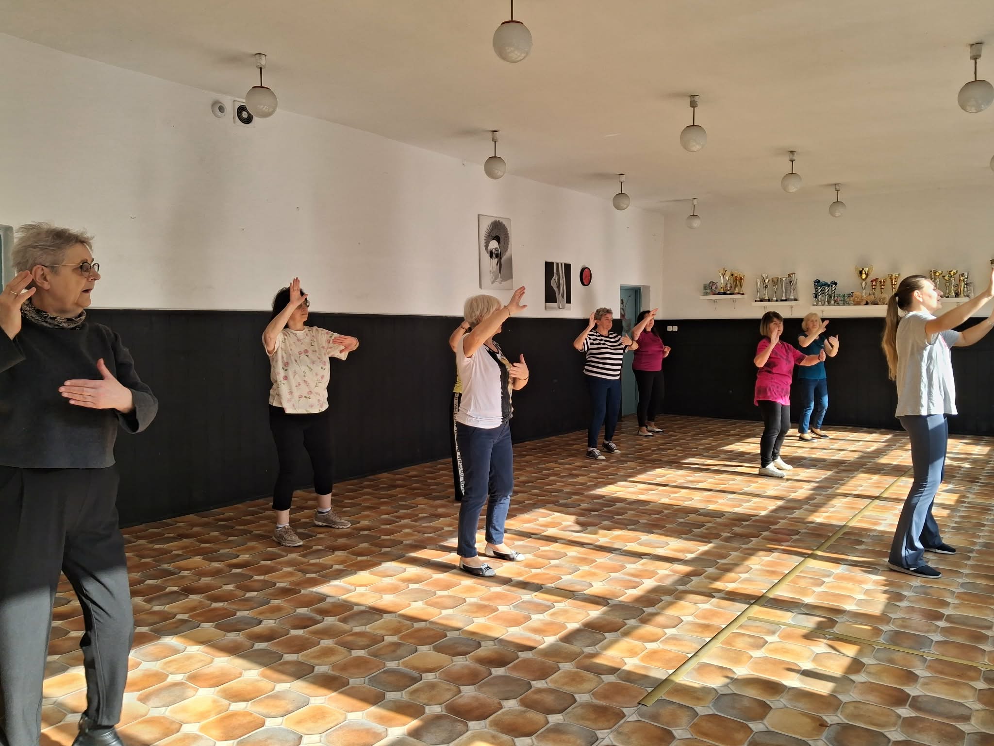 „To my, Srebrne Babki, na ulubionych zajęciach tanecznych 11 III 2026. Pozdrawiamy serdecznie!”