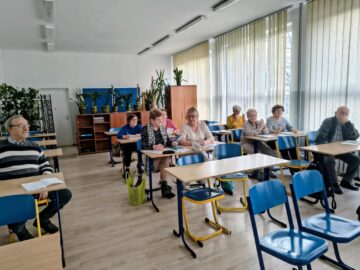 Jak w każdy czwartek o godz. 9.00 spotykają się na zajęciach z neurobiku z ich trenerem Markiem Więskiem. Trening zaczynają od uruchomienia swoich neuronów. Czasami łączą różne obrazki w „łańcuszek” (to takie opowiadanie), innym razem uruchamiają swoją lewą i prawą półkulę i rysują obrazki lewą i prawą rękę. A co z tego powstaje? Zabawne historie, które wywołują śmiech, a on uruchamia mózg i dlatego już na pełnych obrotach mogą pracować całą lekcję.