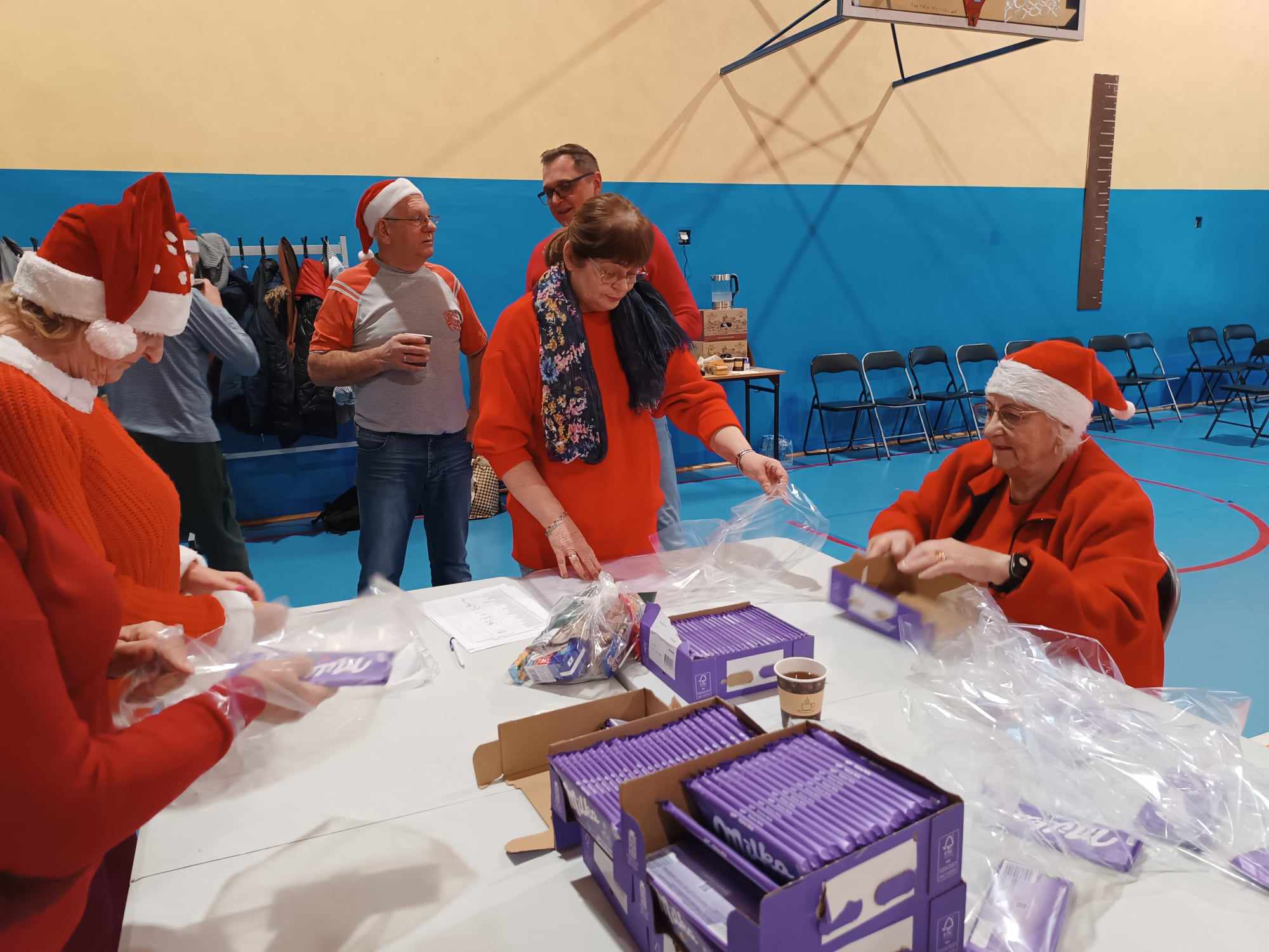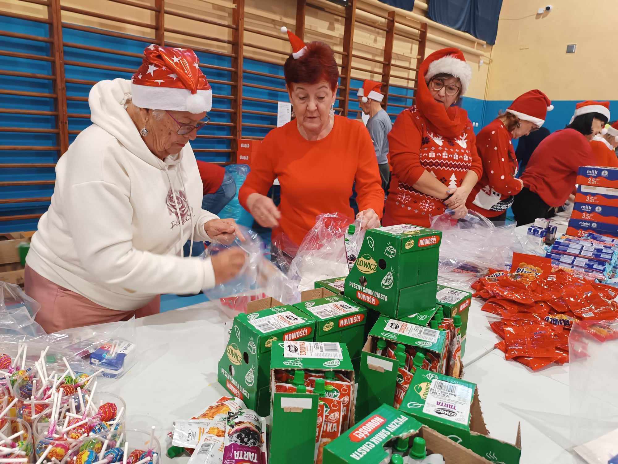 Podobna atmosfera panowała drugiego dnia. W niedzielę 1 XII 2024 do pracy zgłosiło 30 osób, z czego 17 było obecnych przez 2 dni. W sumie 45 seniorów wzięło udział w V edycji przygotowywania paczek na Miejską Choinkę.