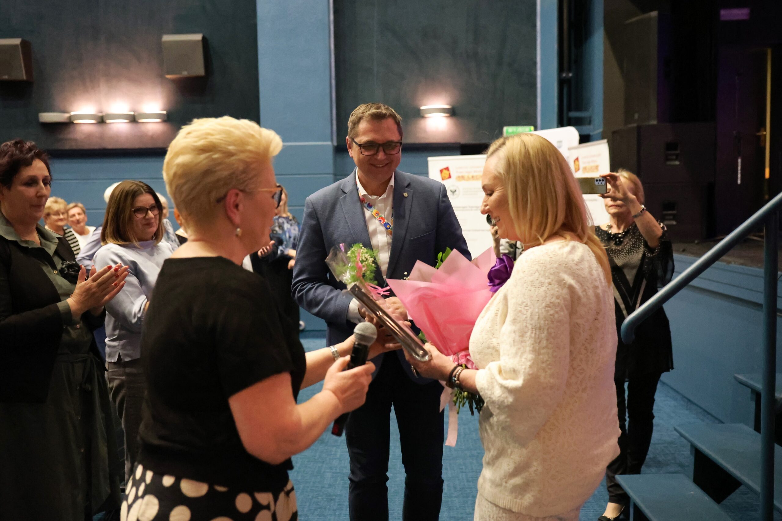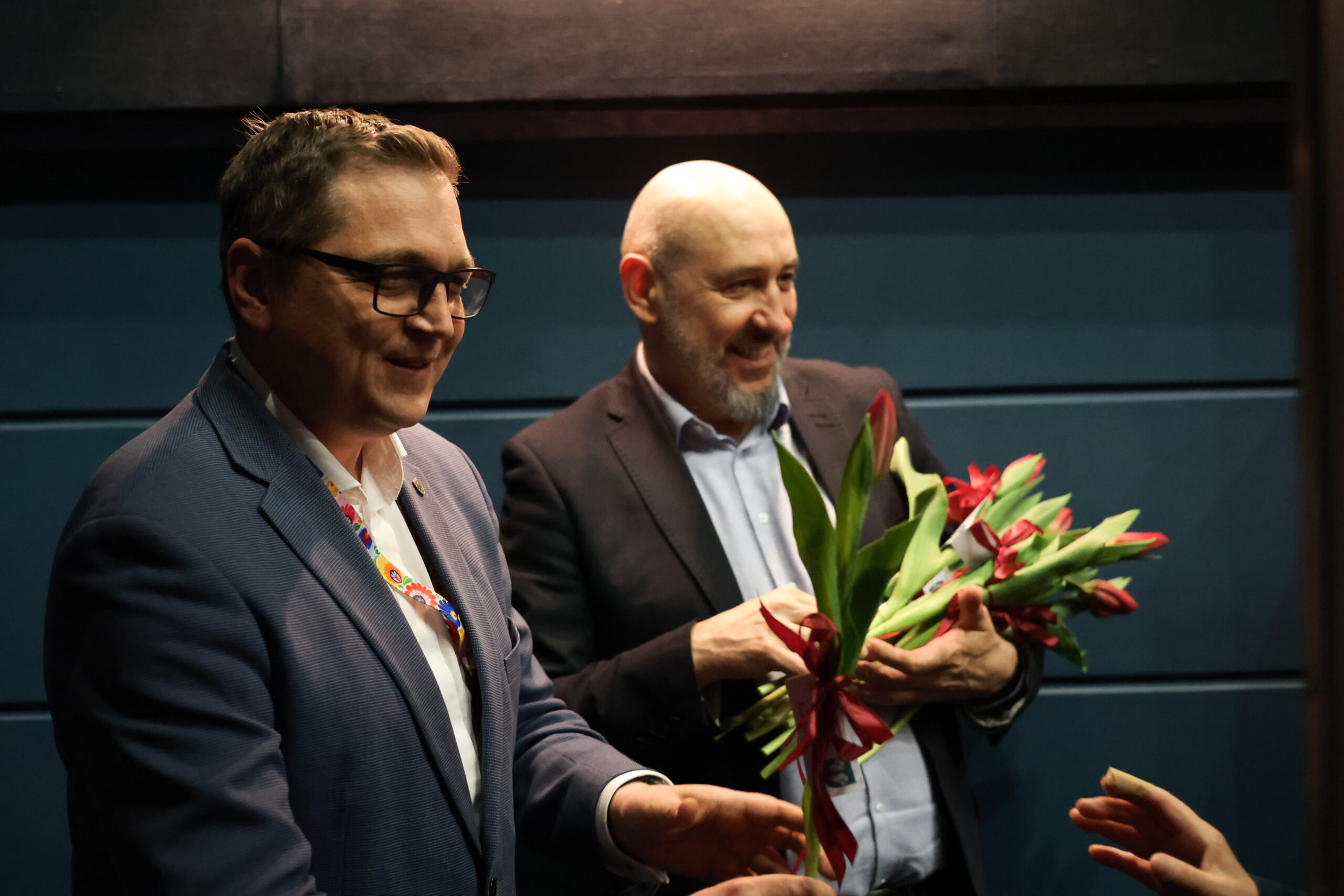Na zakończenie koncertu obaj Panowie Burmistrzowie oraz Krzysztof Filasiński złożyli wszystkim paniom życzenia z okazji Dnia Kobiet. Artysta wykonał jeszcze jeden bis i na życzenie wzruszonej M. Śmiałek zaśpiewał piękny utwór „Mamo”. Przy wyjściu na wszystkie panie czekały piękne tulipany, które wręczali Panowie Burmistrzowie oraz Maciej Malangiewicz – dyrektor ŁOK.