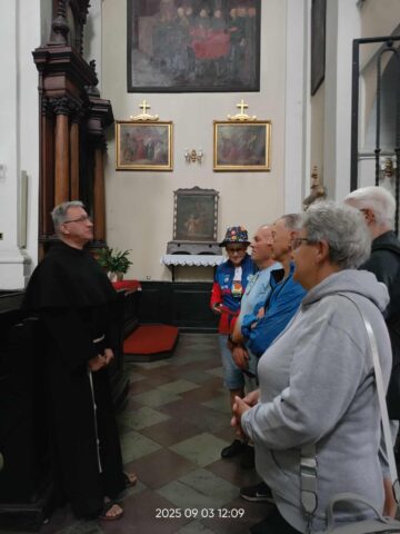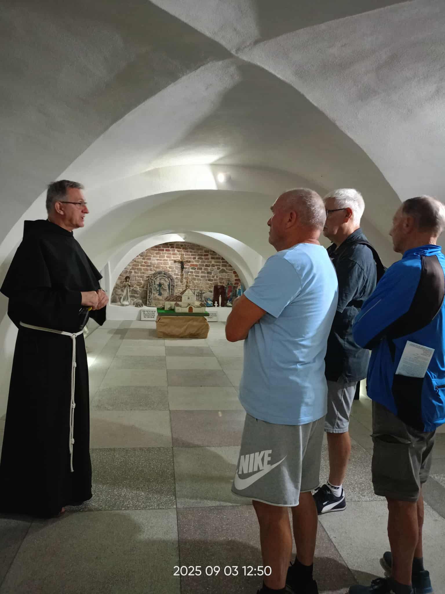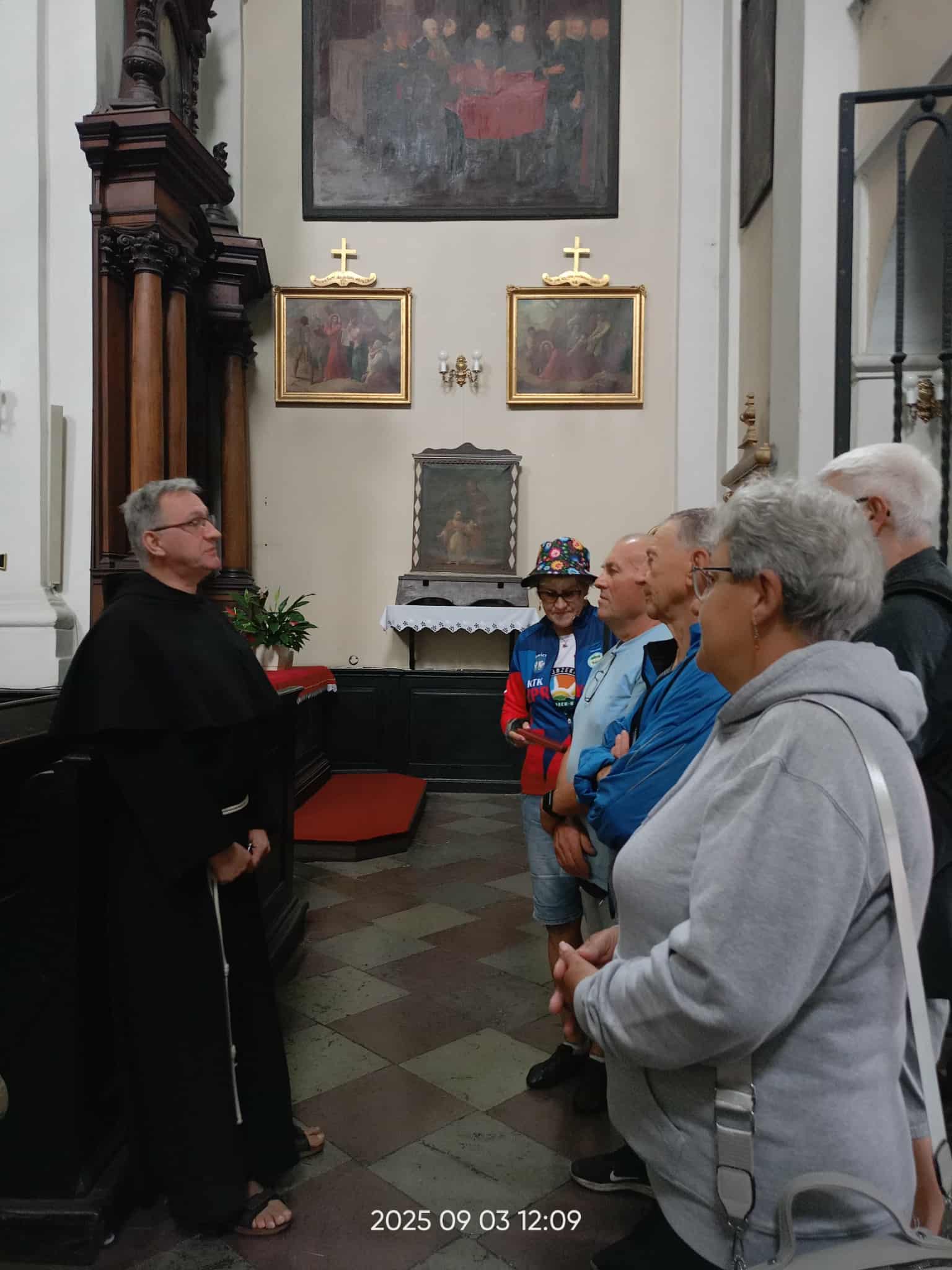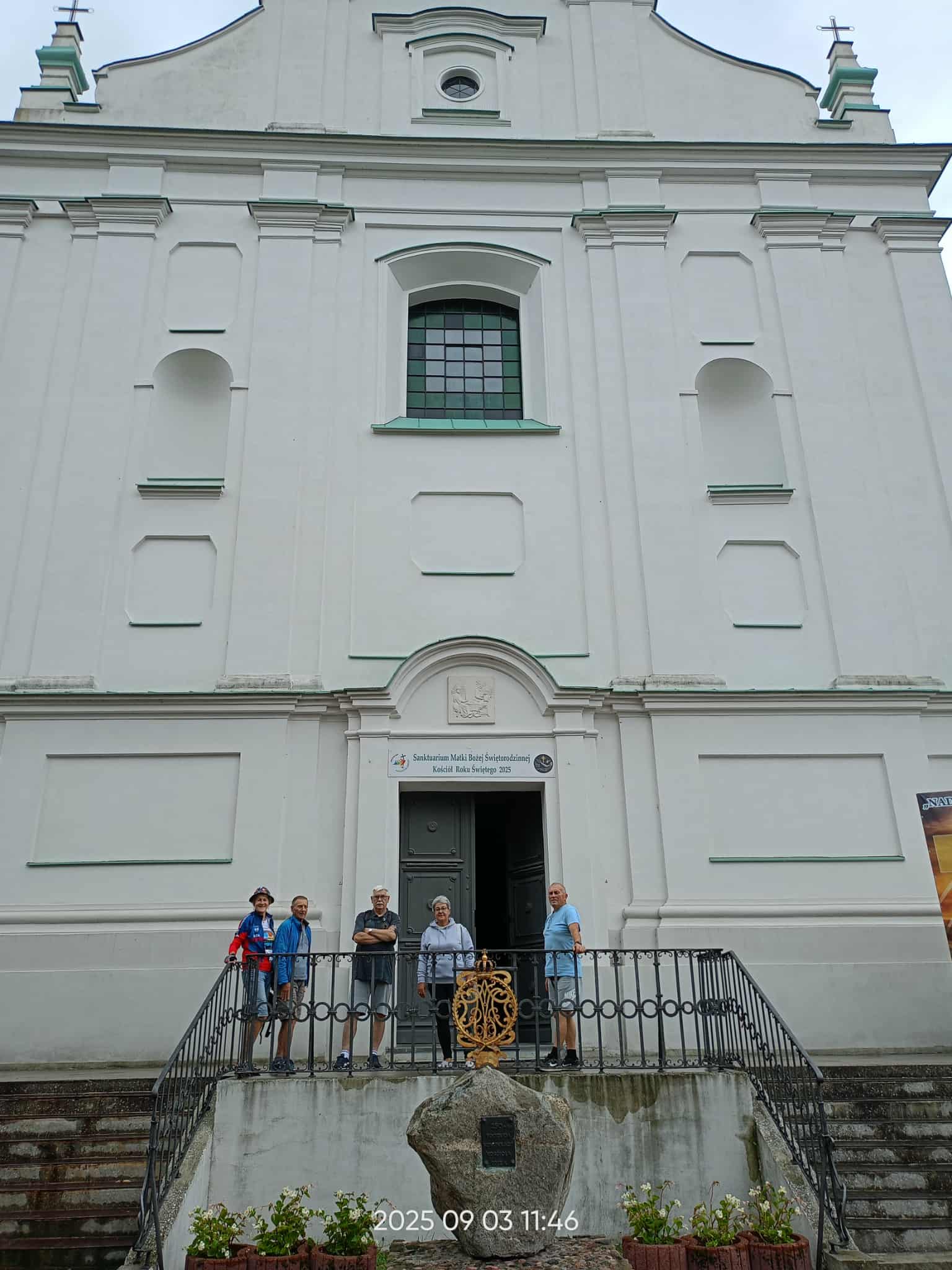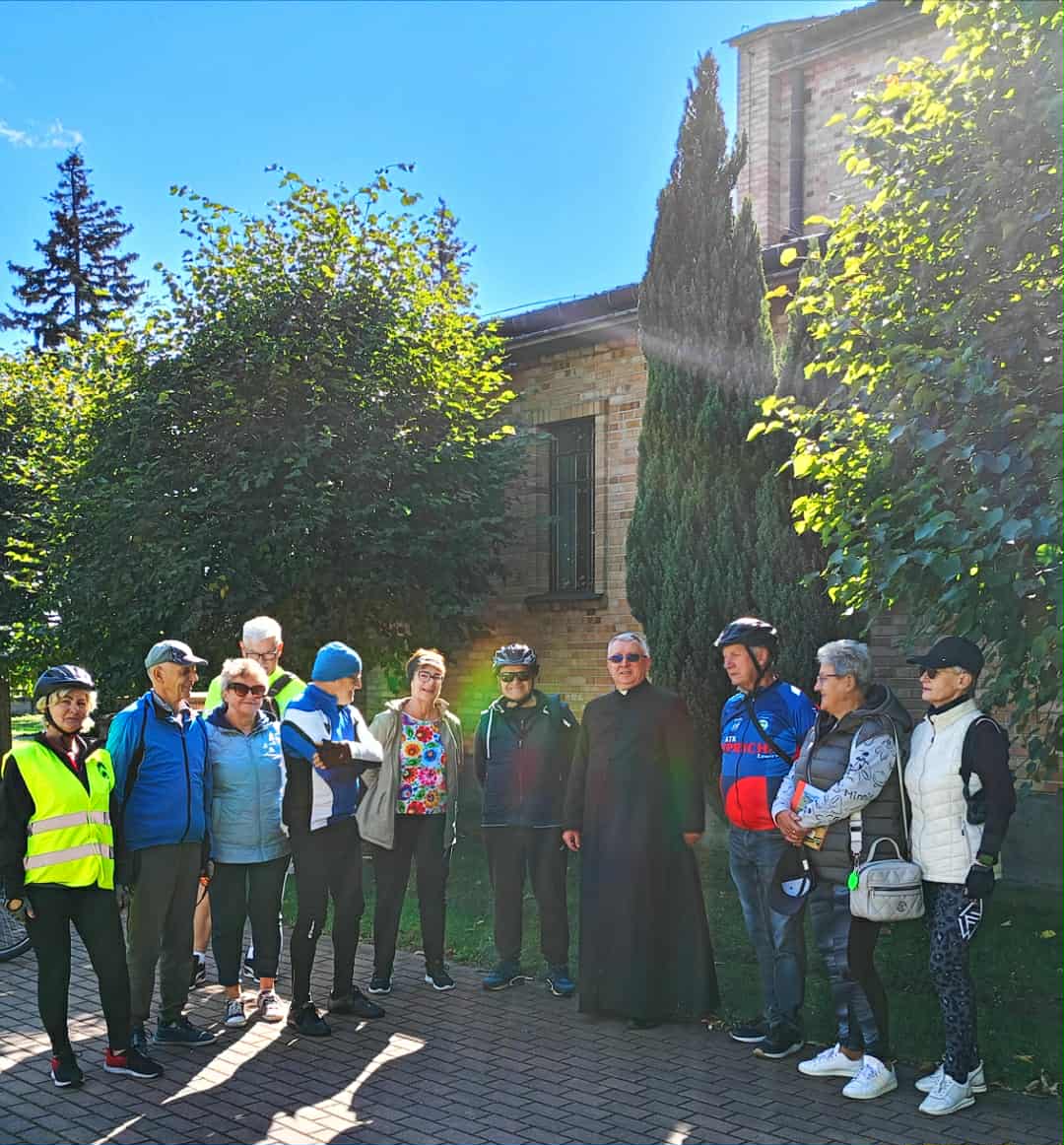 3 IX - także sześcioosobową grupą, wybrali się do Sanktuarium Matki Bożej Świętorodzinnej w Miedniewicach. I tym razem także część trasy pokonali pociągiem – dojechali do Jasionny Łowickiej, gdzie dołączyła do nich kolejna uczestniczka. Dalszą trasę przez Bolimów do Miedniewic pokonywali w pelerynach przeciwdeszczowych, ale warto było! W Sanktuarium byli umówieni z bratem Piotrem, który był ich przewodnikiem. Niestety, remont kościoła uniemożliwił im zwiedzenie całego wnętrza, ale podziwiali ołtarz, zatrzymali się w zakrystii, zwiedzili podziemne krypty, a na zewnątrz poznali Dróżki Maryjne i ogród. Bardzo zadowoleni wyruszyli rowerami w podróż powrotną do Łowicza przez Bolimów, Jasionnę i Bednary. W Łowiczu ich liczniki ujawniły pokonany dystans: 50 km!