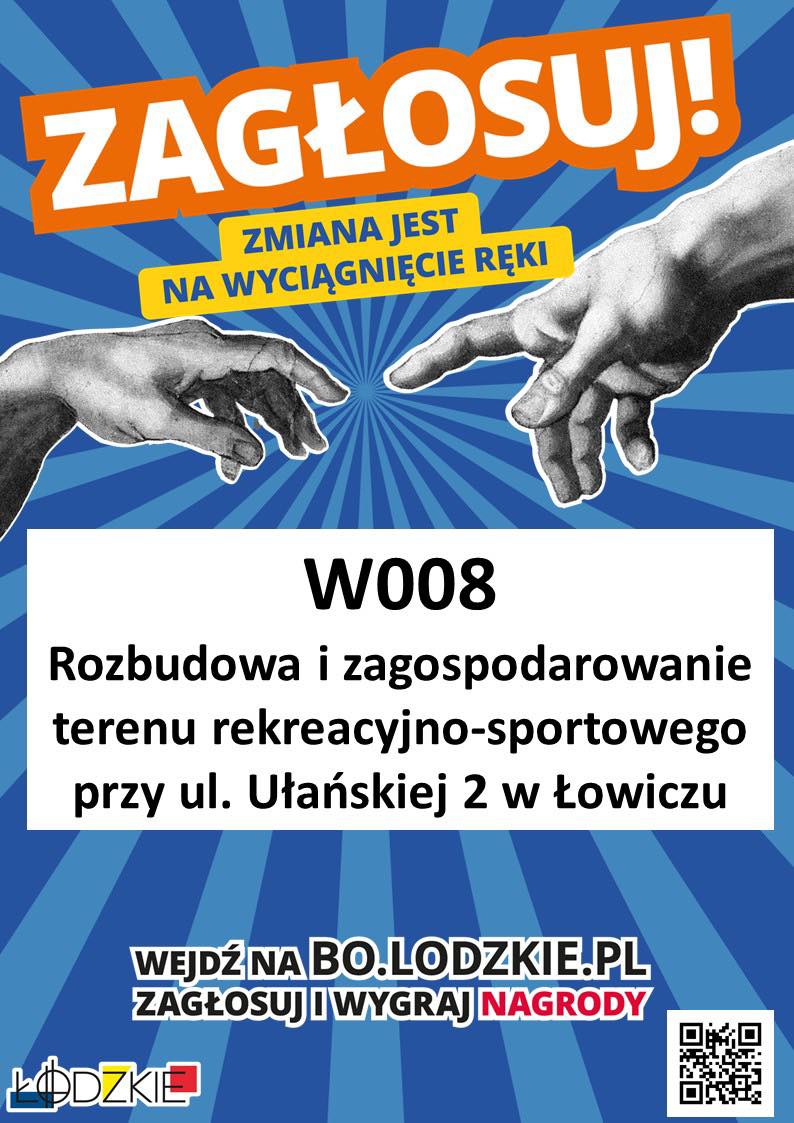 W008 – to projekt z puli wojewódzkiej zgłoszony przez dyr. Agnieszkę Rutę- Kucińską z II LO im. Mikołaja Kopernika w Łowiczu dotyczący rozbudowy i zagospodarowania terenu rekreacyjno-sportowego przy szkole ul. Ułańska 2. Młodzież zyska boisko do gry w siatkówkę i odnowione patio.