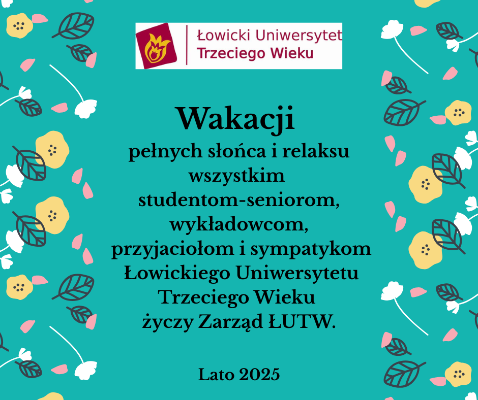 Dziękujemy wszystkim słuchaczom, wykładowcom, przyjaciołom i sympatykom Łowickiego Uniwersytetu Trzeciego Wieku za bardzo dobry rok akademicki 2024/2025 i życzymy wakacji pełnych słońca i relaksu:).